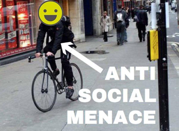 The thing is, where I live and work in London, some cyclists take it upon themselves to ride on the pavements… not cycle lanes… but pavements… the things that people are supposed to WALK on…the things that, unsurprisingly, are full of people walking.